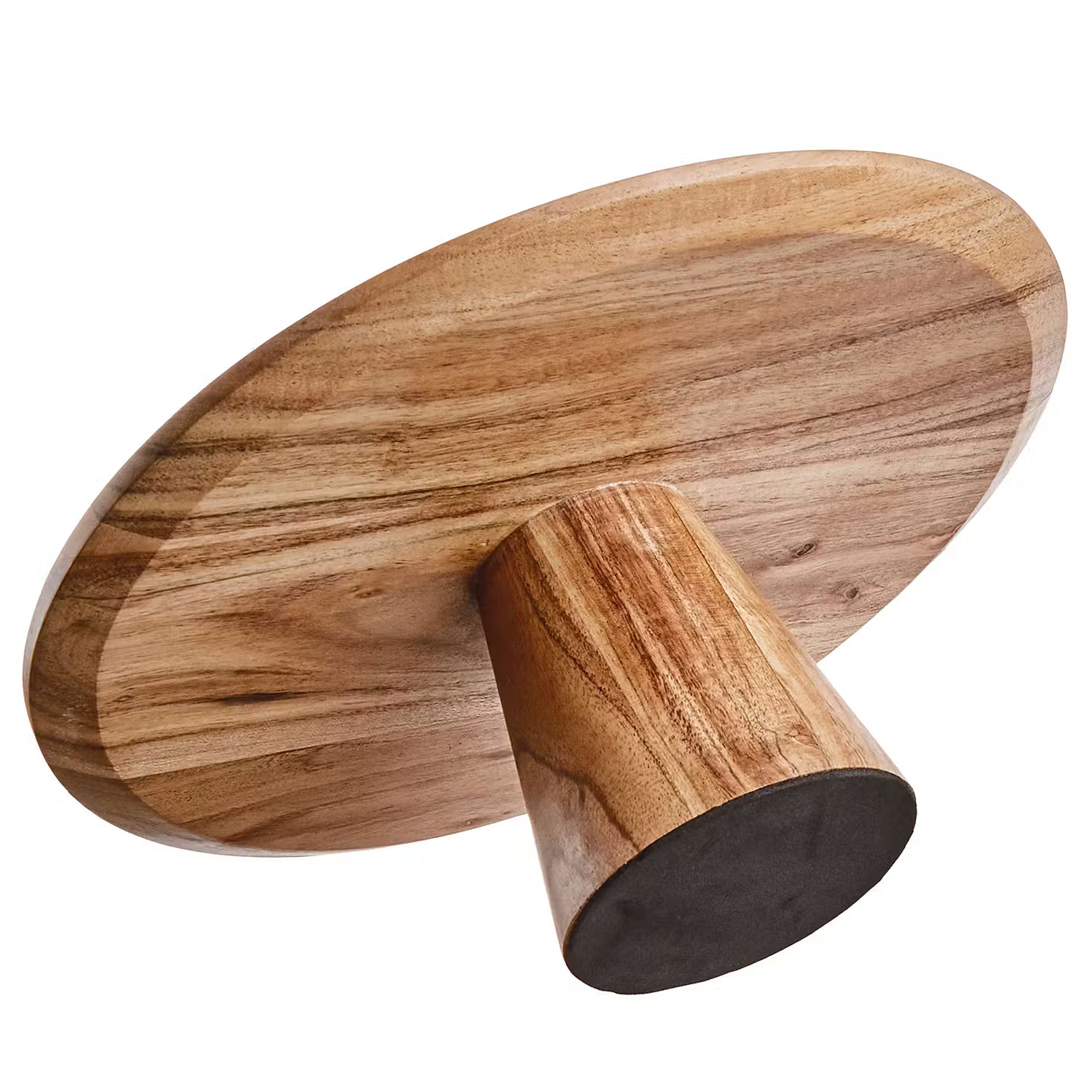 Optisch allererste Sahne: Die moderne Acacia Tortenplatte mit Fuß aus braun schimmerndem Akazienholz präsentiert Ihre Kuchen und Torten gekonnt und stilvoll. Mit ihrem Naturmaterial Holz macht die runde Tortenplatte zugleich Appetit auf Tischdekorationen, die auf helle Beige- und Grautöne setzen oder im tropischen Stil mit kräftigen Tönen wie Grün, Rot und Orange spielen. So oder so wird Ihre Kaffeetafel mit der Acacia Tortenplatte zu einem besonderen Leckerbissen.