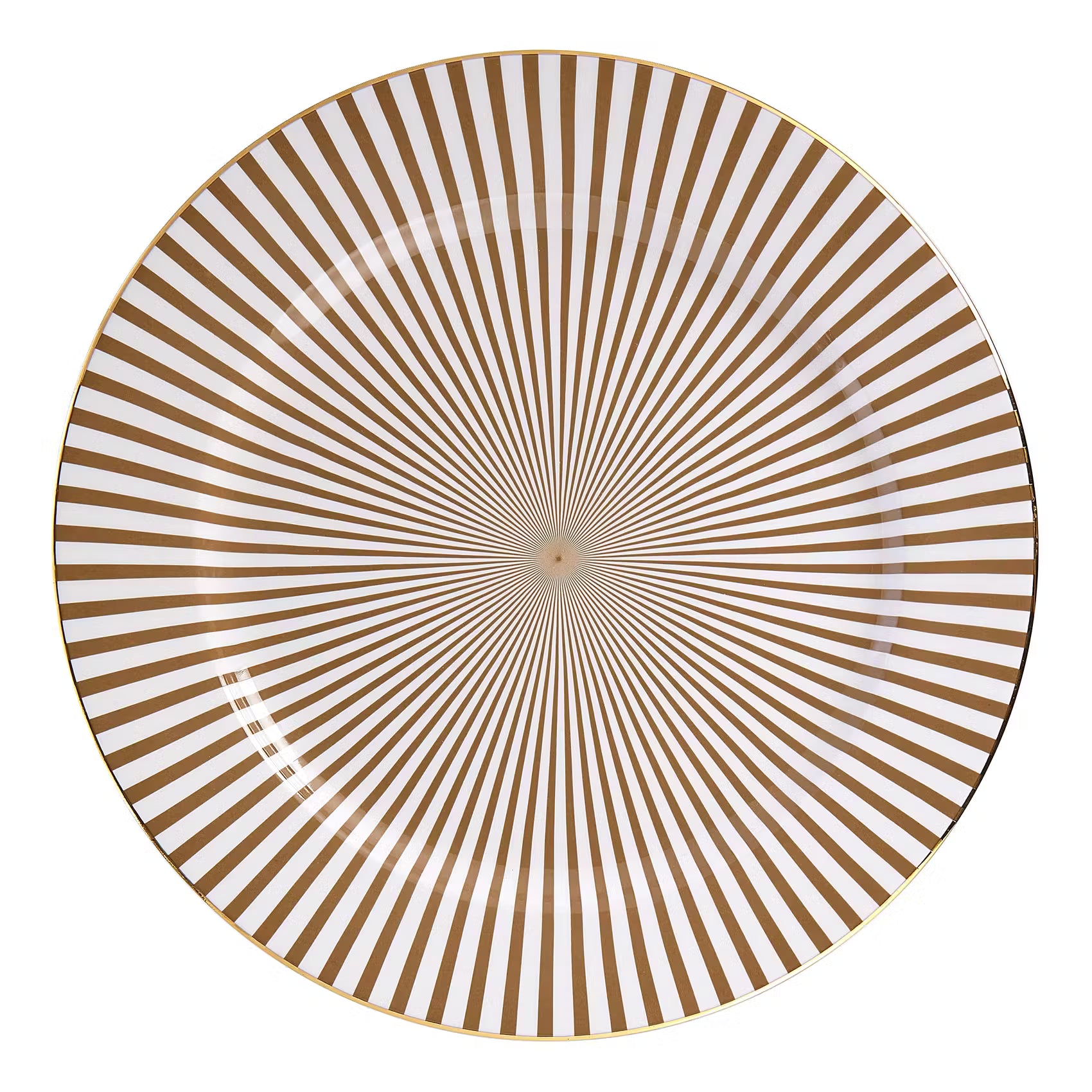 Ein gedeckter Tisch wird zur festlichen Tafel mit edlen Accessoires wie dem Palace Platzteller in Weiß und Gold. Diesen raffiniert gemusterten Platzteller aus Porzellan kombinierst du z.B. mit Besteck, Kerzenhaltern, Tischaccessoires und Vasen in Gold, für einen harmonischen Gesamtlook.