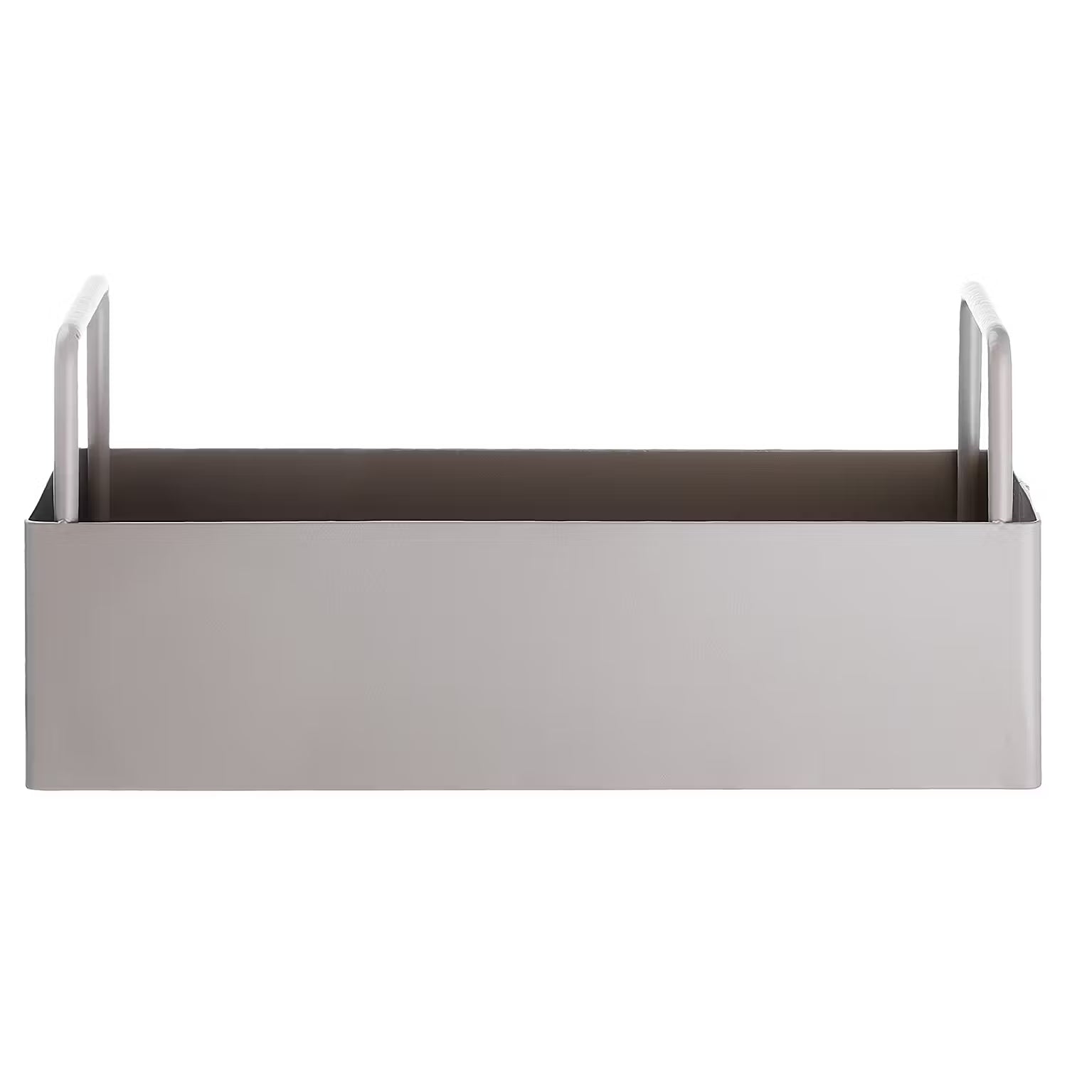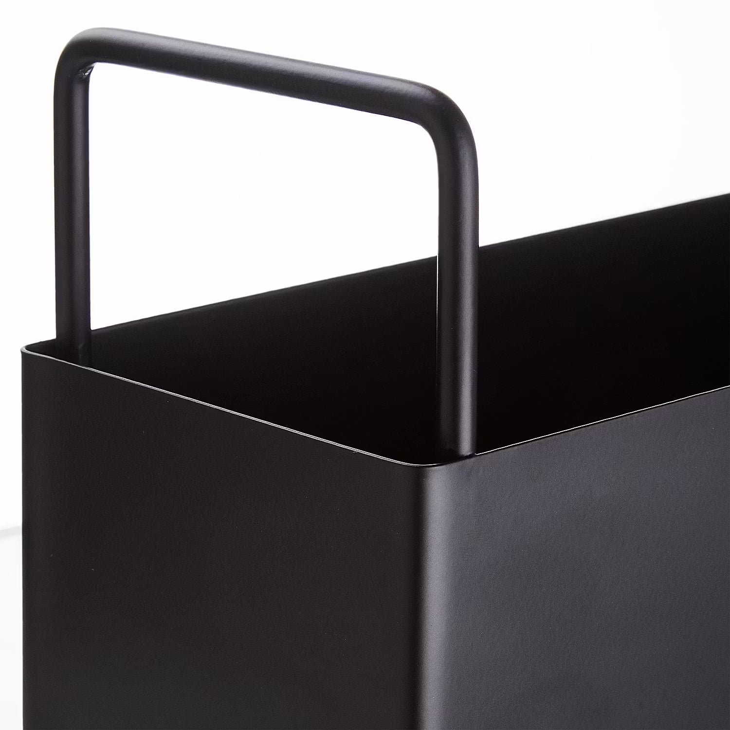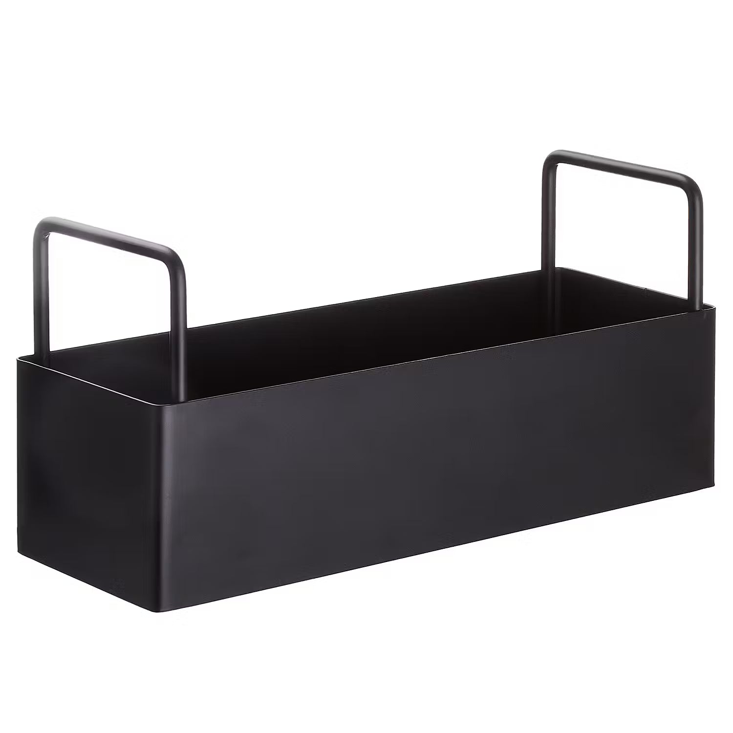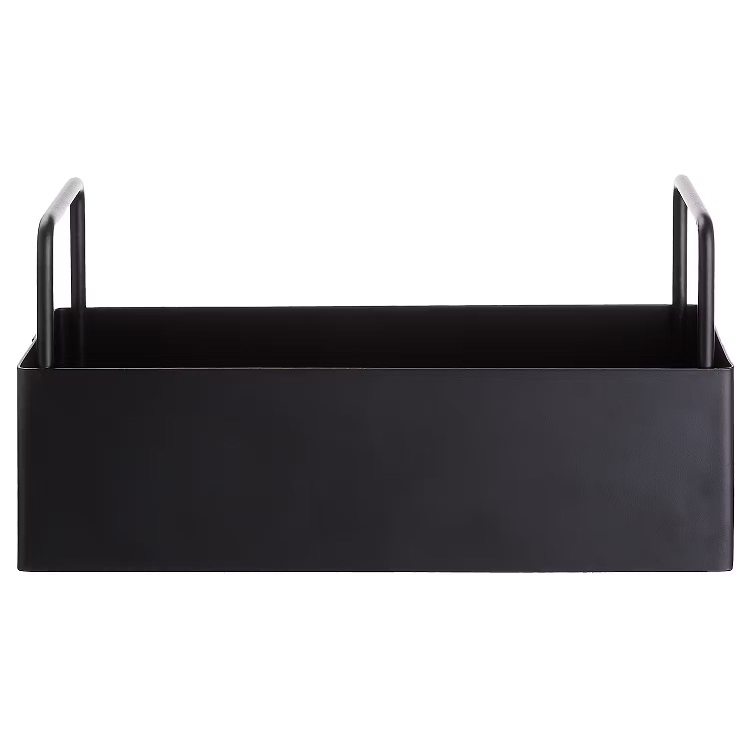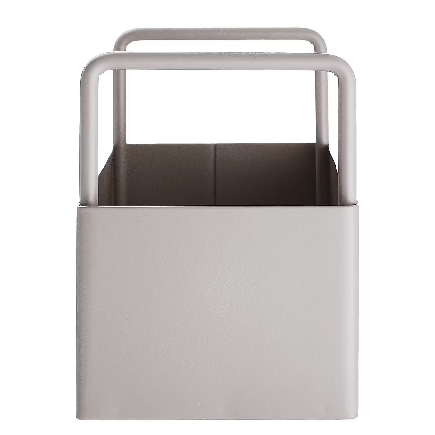Ordnung kann so modern und cool aussehen mit dem Sideline Utensilienbehälter. Der geradlinige Kasten mit Griffen ist aus massivem Metall gefertigt und bietet wertvollen Stauraum für z.B. Dosen, Kosmetik oder Bürobedarf. Im Alltag erweist er sich mit seiner pulverbeschichteten Oberfläche dabei als robust und unkompliziert, zum Reinigen staubt oder wischt man den Utensilienbehälter einfach mit einem weichen Lappen ab. So sieht bei Ihnen alles tipptopp aus und Schmuddelecken haben keine Chance.