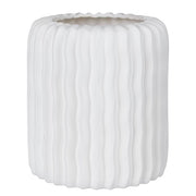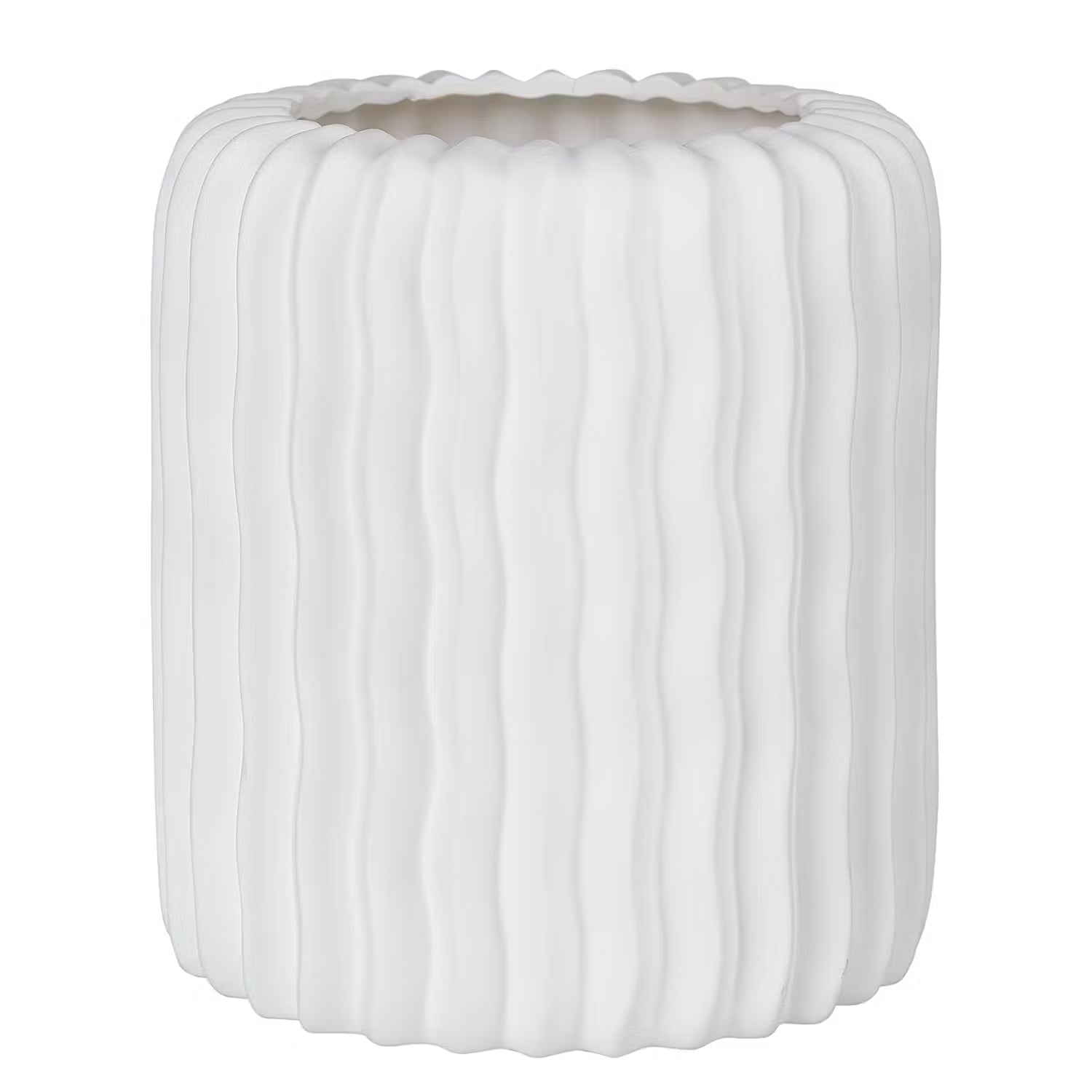 Mit organisch geformten Riffeln und einem zarten Weiß-Ton gibt die Bon-Ton Vase aus Steingut dekorativ den Ton an. Sie eignet sich für bunte Blumen und zarte Trockensträuße gleichermaßen, ob auf dem gedeckten Tisch, der Fensterbank oder einer Kommode.