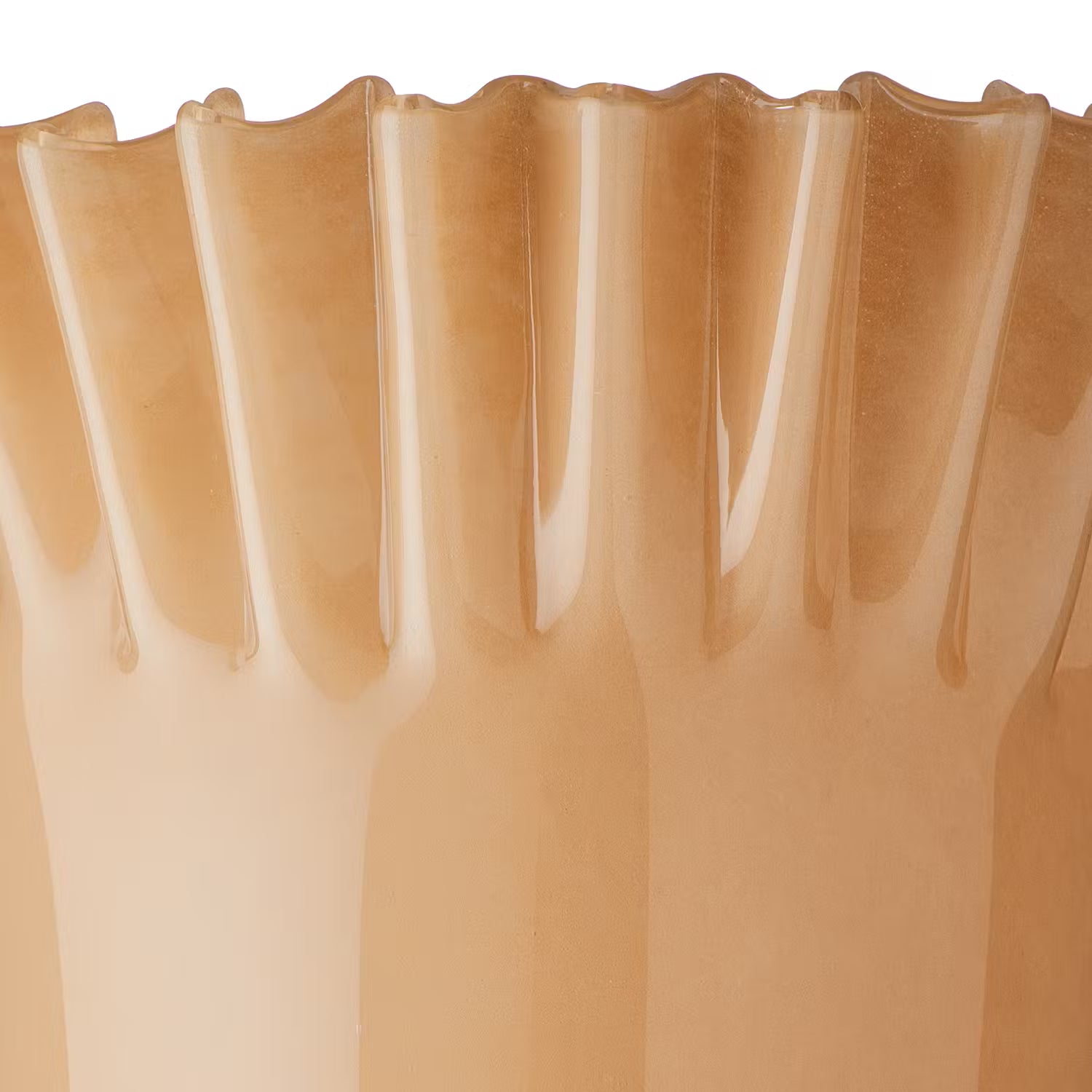 Mit dem feinen Faltenwurf am oberen Rand hebt sich die Plissee Glas Vas in glänzendem Pastellorange hervor. Mit diesem ungewöhnlichen Look hat die Vase modisch die Nase ganz weit vorne und setzt neue Trends in deinem Zuhause. Perfekt auch Geschenk für Fashionistas.