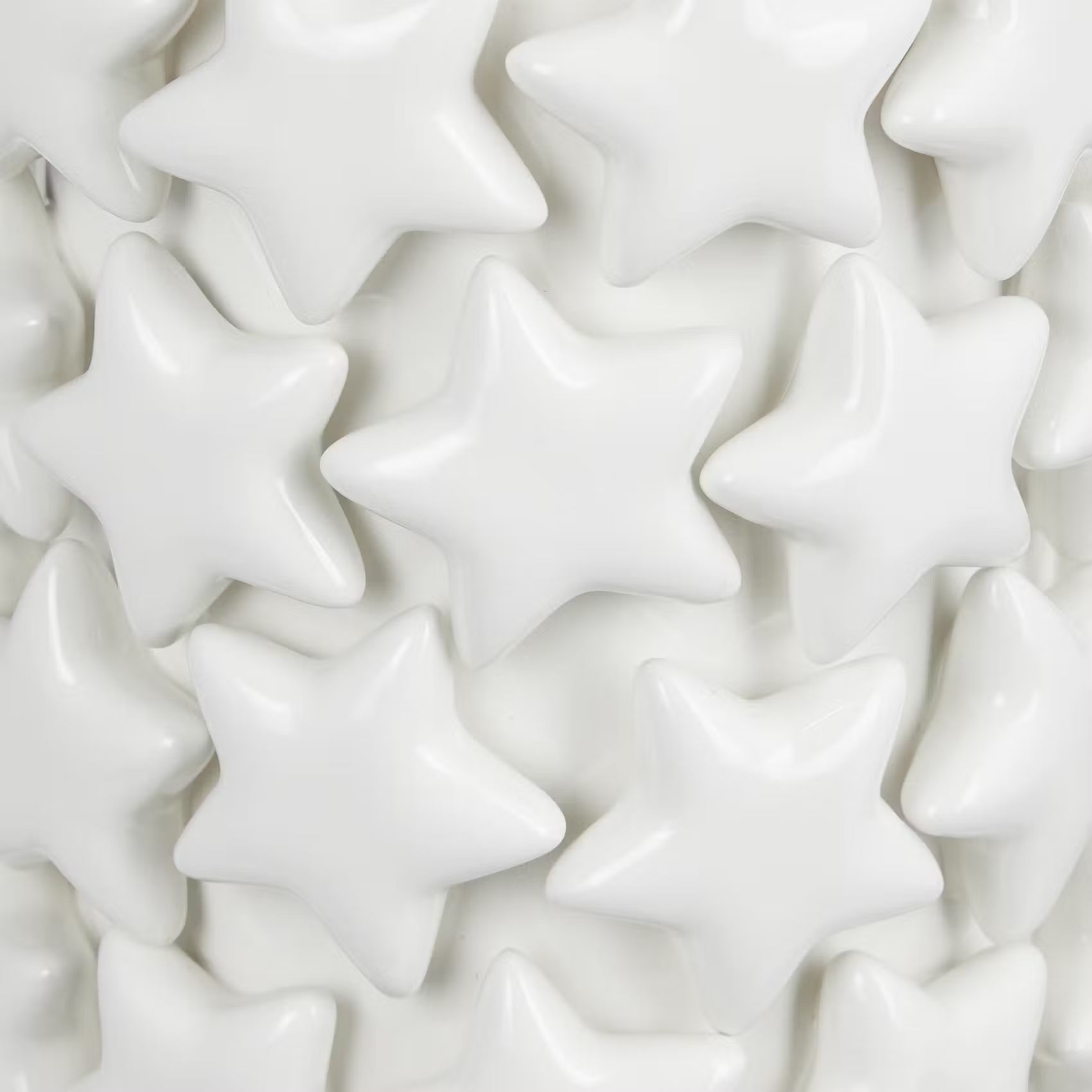 Bedeckt mit 3-D-Sternen ist die 30 cm hohe Stars Keramik Vase in Weiß. Mit dieser zylindrischen Vase aus Steingut wird deine Dekoration wahrhaftig himmlisch, und z.B. mit zarten Trockenblumen wird sie zum Highlight auf dem gedeckten Tisch.
