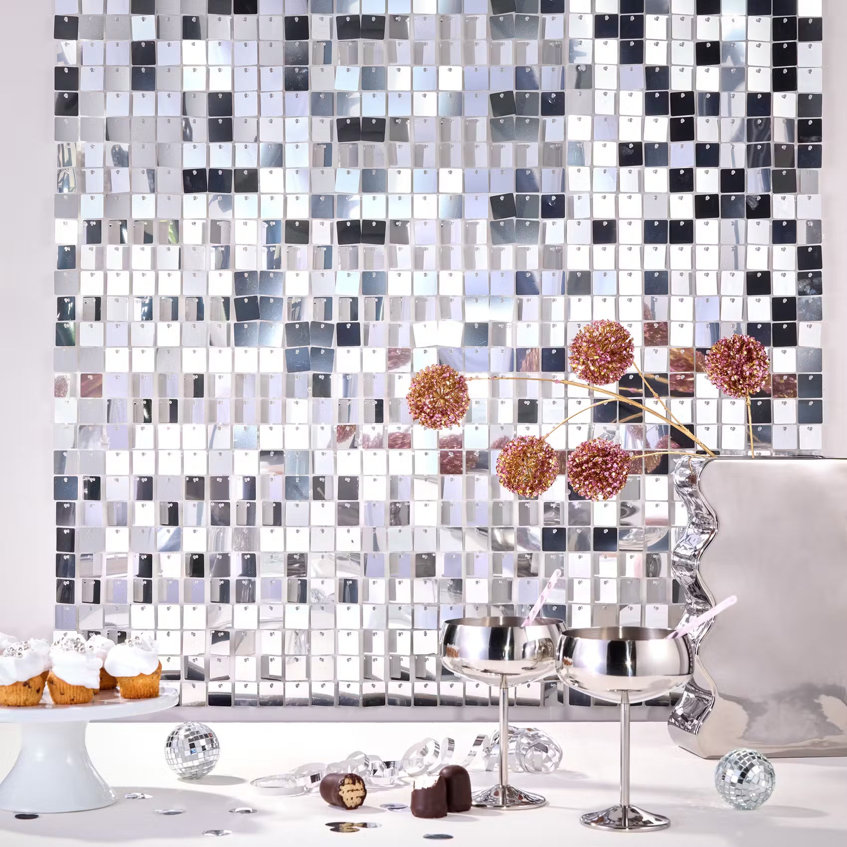 Disco Fever für dein Zuhause: Mit der Disco Wanddekoration lässt du es zu Partys und an Feiertagen wie Silvester richtig schön funkeln. Die 4 Teile sind im Handumdrehen zusammengesteckt, und fertig ist die Wanddeko im Look einer Discokugel. Damit setzt du dann z.B. deine Bar in Szene oder inszenierst einzelne Bereiche wie z.B. die Tanzfläche. In Gold und Silber erhältlich.