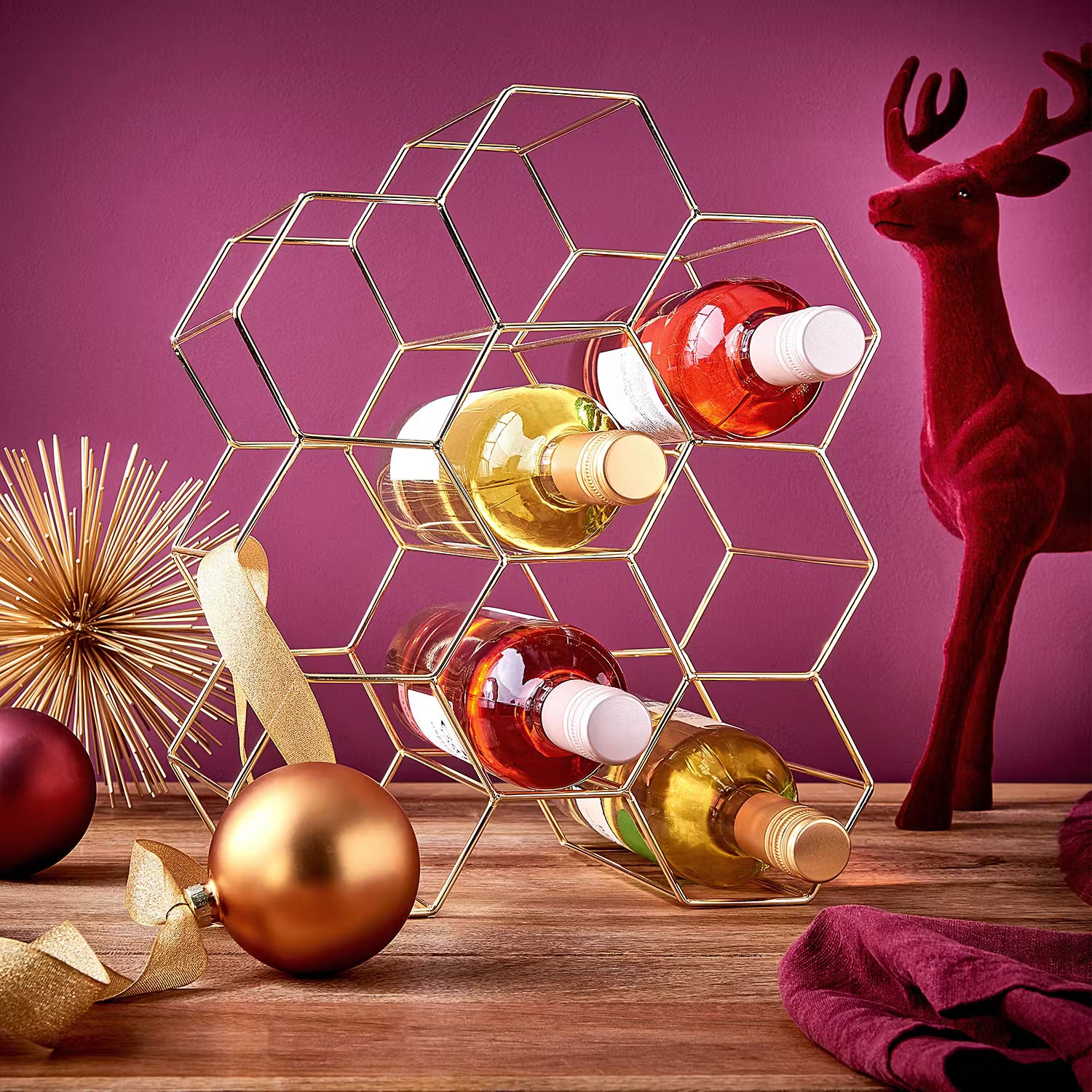 Heute heben wir das Glas auf das goldene Cubicle Weinregal für 9 Flaschen und trinken auf die elegante Verbindung von Aufbewahrung und Dekoration. Denn dieses Weinregal aus Eisen hält nicht nur Weinflaschen praktisch griffbereit, sondern setzt auch edle Flaschen mit schönem Etikett stilecht in Szene. Dabei harmoniert das Weinregal perfekt mit Ihrer Skandi-Küche oder Ihrem Wohnzimmer im glamourösen Stil. Wenn das kein Grund zum Feiern und Anstoßen ist...