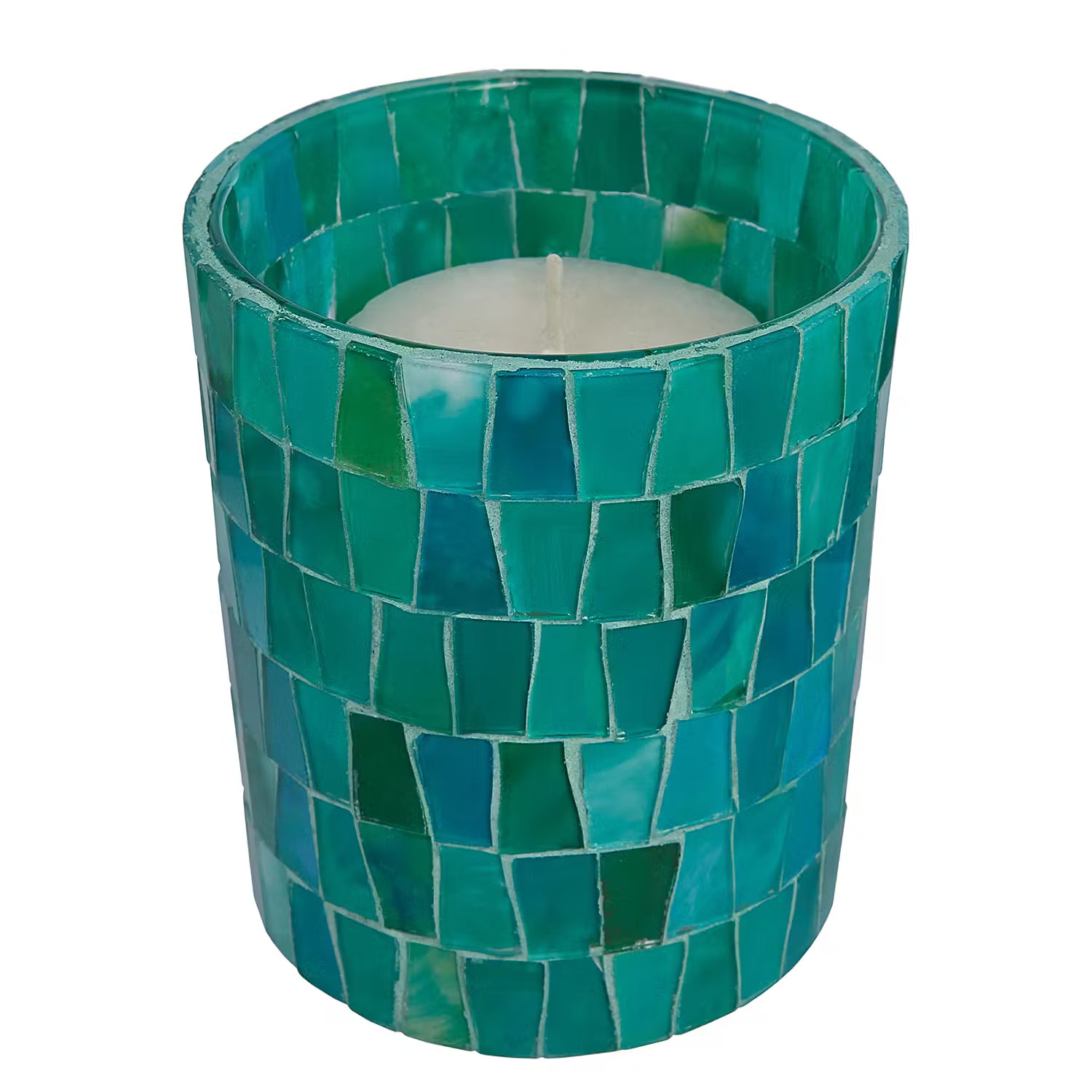 Kräftiges Grün in verschiedenen Nuancen: Diese Farbenpracht der Karibik funkelt im Caribbian Mosaik Windlicht aus grünem Glas. Gerade an langen Sommerabenden, auch auf der Terrasse oder dem Balkon, lässt du so einen Hauch von Ganz-weit-weg aufleben und genießt es, dich in die Ferne zu träumen. In zwei Größen erhältlich, ideal auch zum Kombinieren.